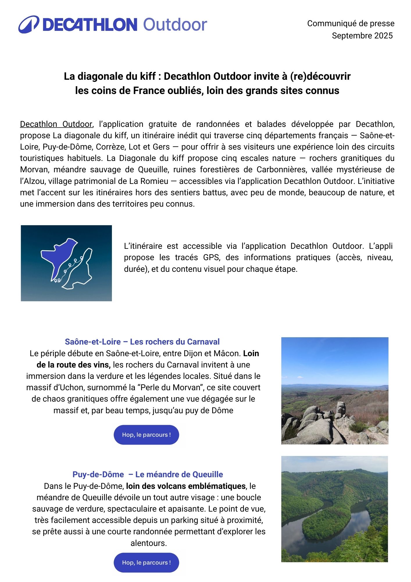 La diagonale du kiff : Decathlon Outdoor invite à (re)découvrir les coins de France oubliés, loin des grands sites connus