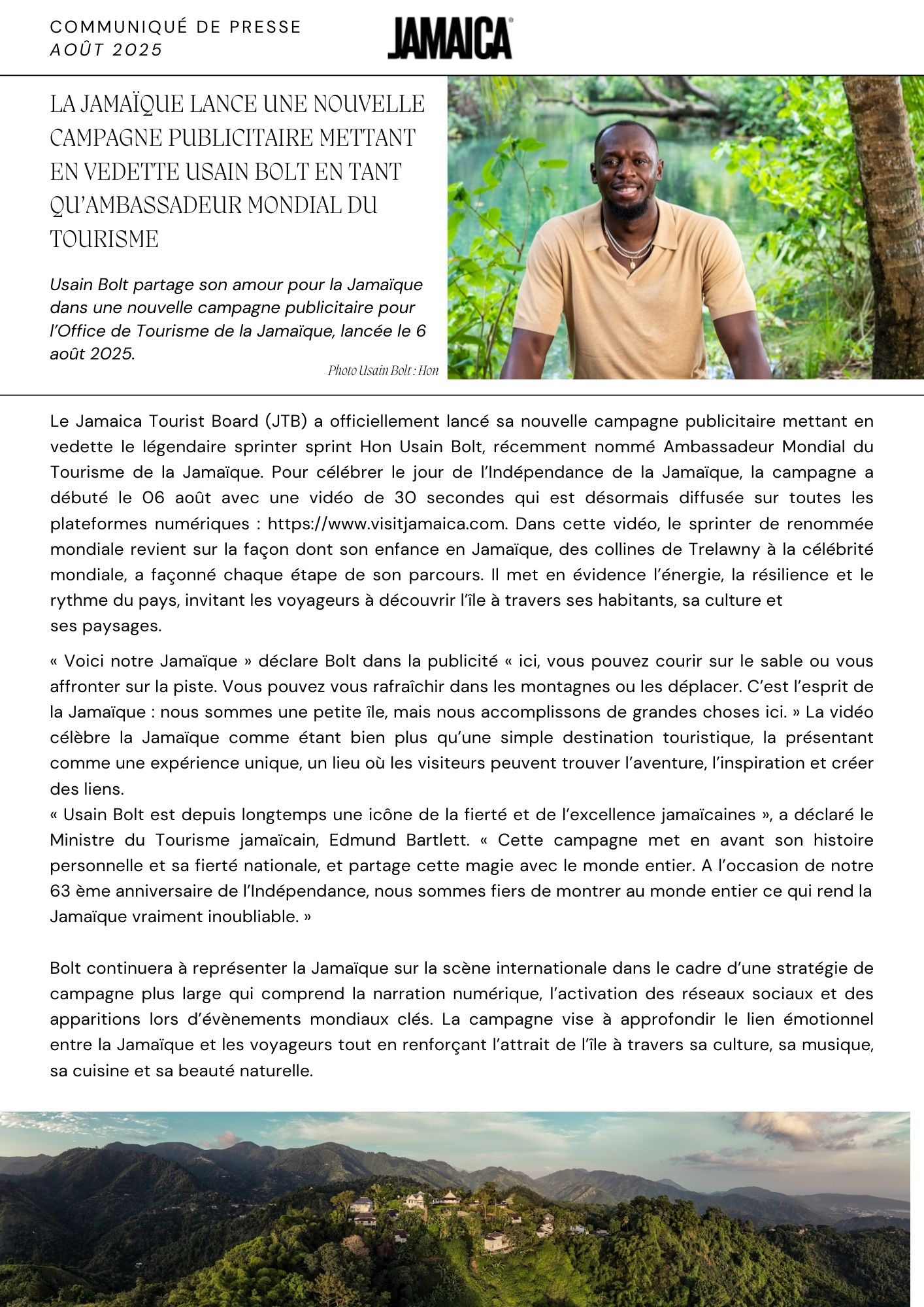 La Jamaïque lance une nouvelle campagne publicitaire mettant en vedette USAIN BOLT