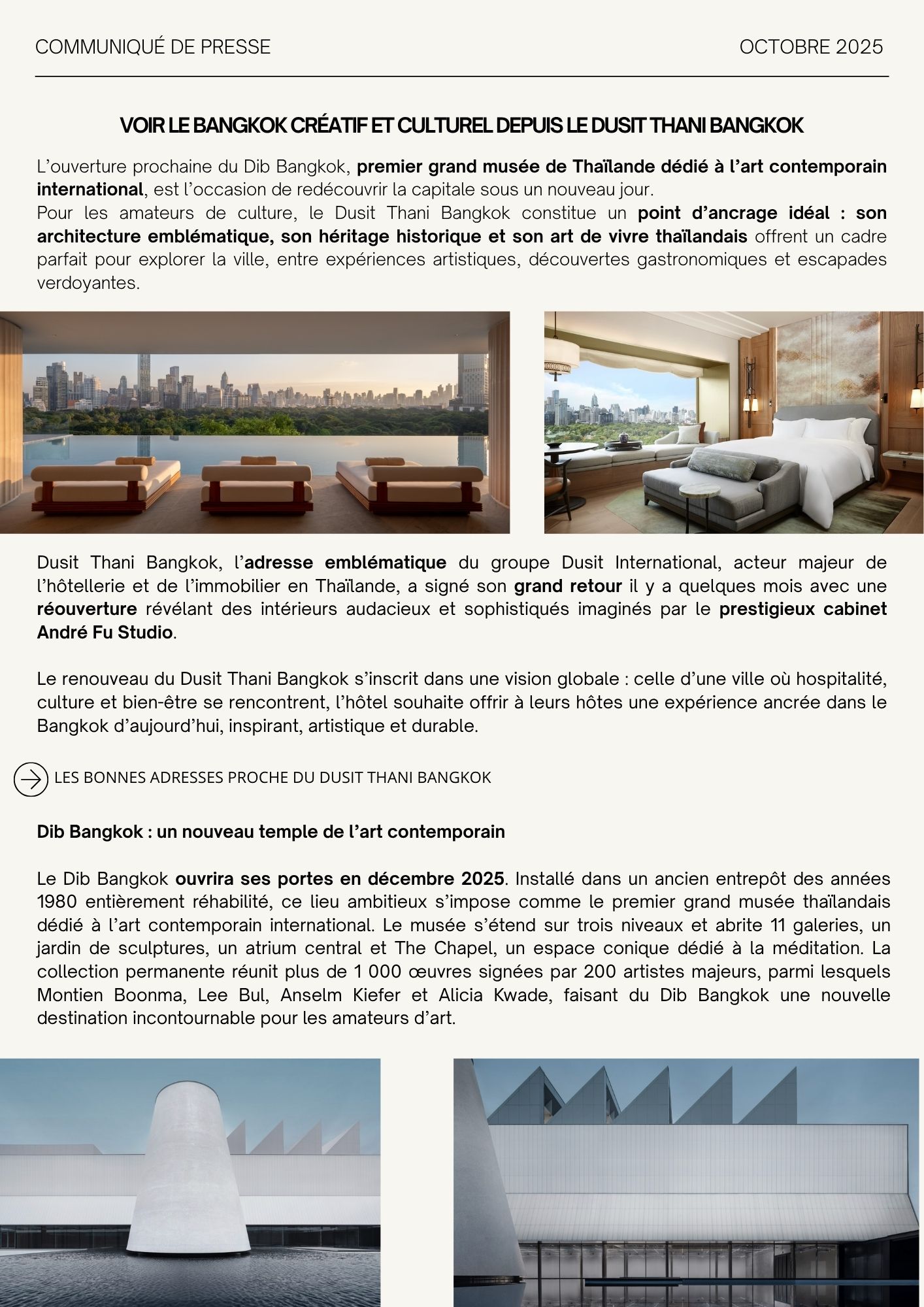 VOIR LE BANGKOK CRÉATIF ET CULTUREL DEPUIS LE DUSIT THANI BANGKOK